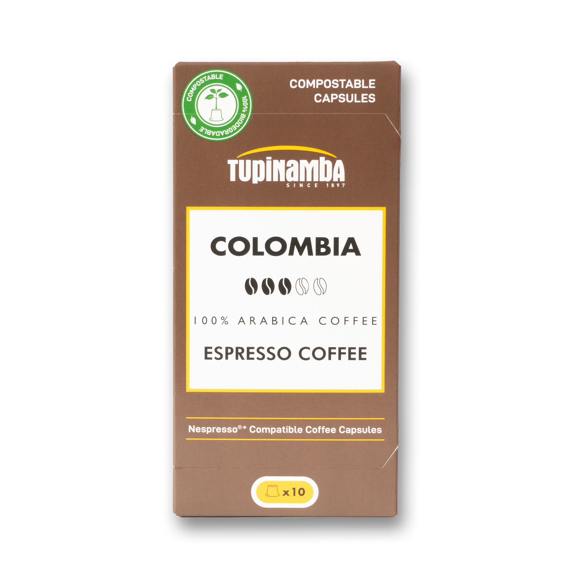 Cada caja contiene 10 cápsulas compostables Intense de café molido de tueste natural. Un total de 120 cápsulas compostables de café y 2 Tazas Tupinamba. Cápsulas compatibles con las cafeteras Nespresso®️*.